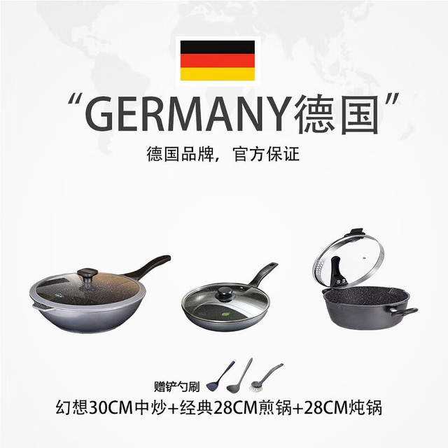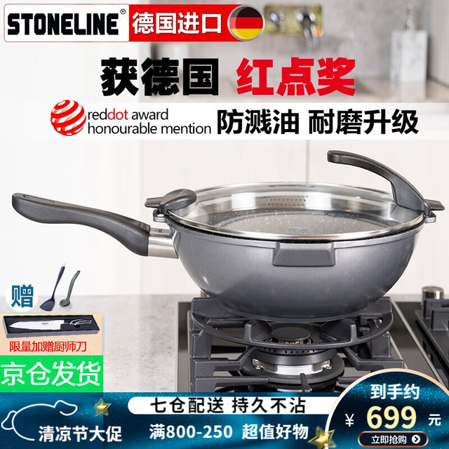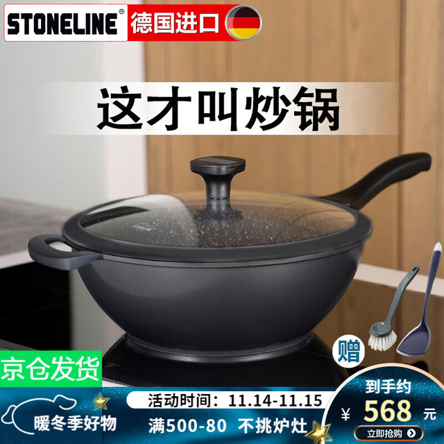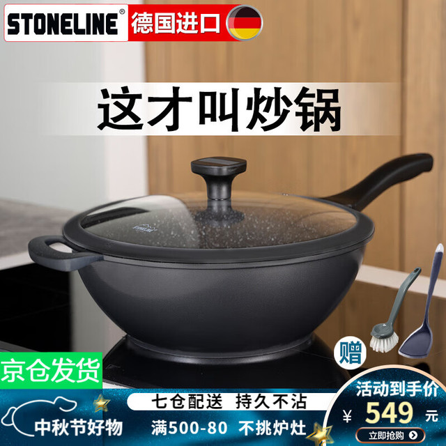STONELINE 德国进口麦饭石不粘锅炒锅无油烟炒菜锅无涂层电磁炉炒锅平底锅 32cm幻想 32cm568元(需用券)