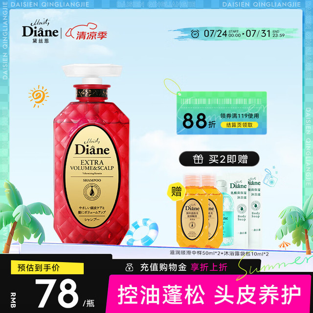 黛丝恩 Moist Diane 洗发水 450ml +洗发水20ml沐浴露20ml 胖东来同款56.3元(需用券)