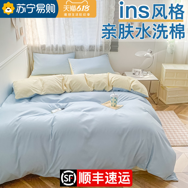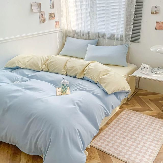 囡囡家纺 家用床单纯色四件套宿舍床上用品全被套枕套床笠水洗棉三件套1612