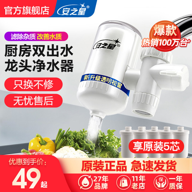 移动端:安之星 净水器家用直饮厨房自来水过滤器五级超滤终端净水机母婴级278元淘金币最高抵扣9.48元