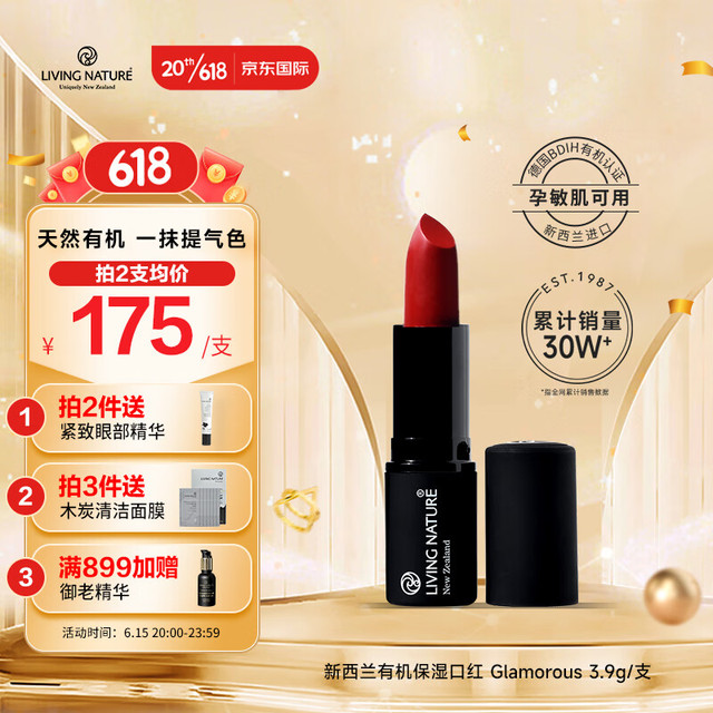 LIVING NATURE 新西兰天然保湿有机口红 16#Glamorous 敏感肌可用 3.9g/支(包税包邮)