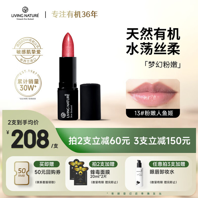 LIVING NATURE 口红孕妇可用植物天然有机 13#万用叠涂珠光玫调人鱼姬