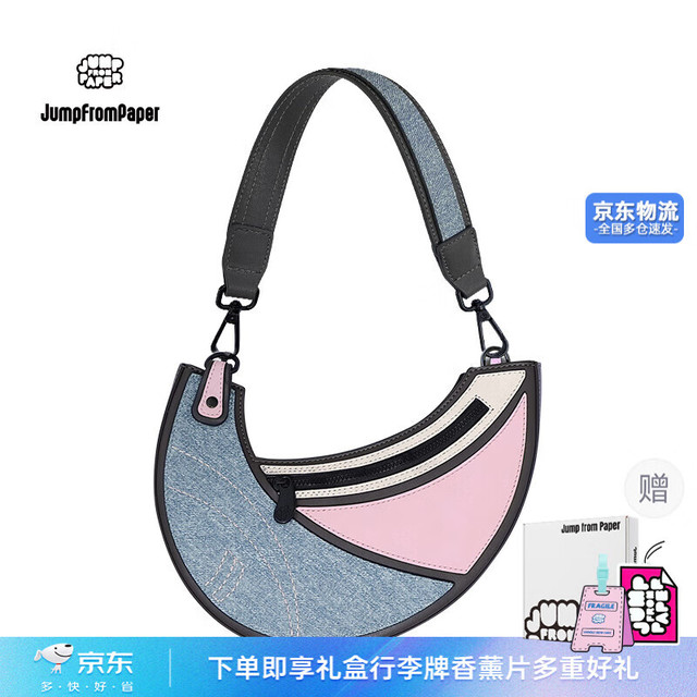 JumpFromPaper 月牙包腋下包斜挎包女生女士单肩包 牛仔粉