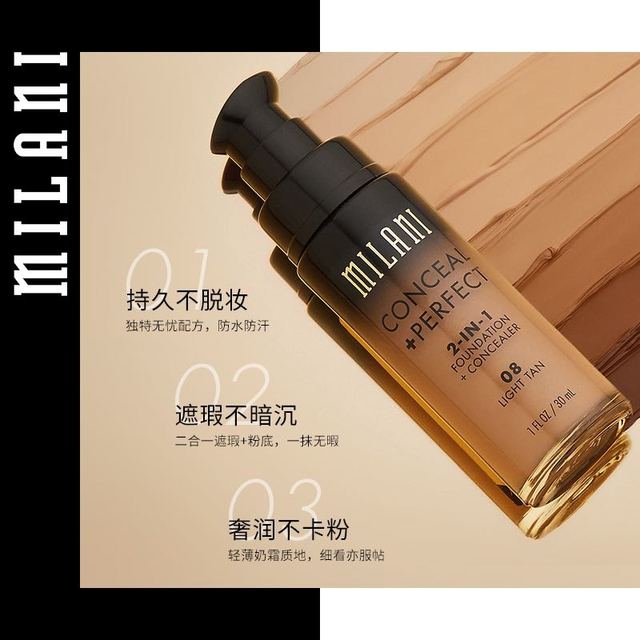 milani 完美零瑕控油遮瑕粉底液保湿持久自然持妆轻薄服帖不脱妆