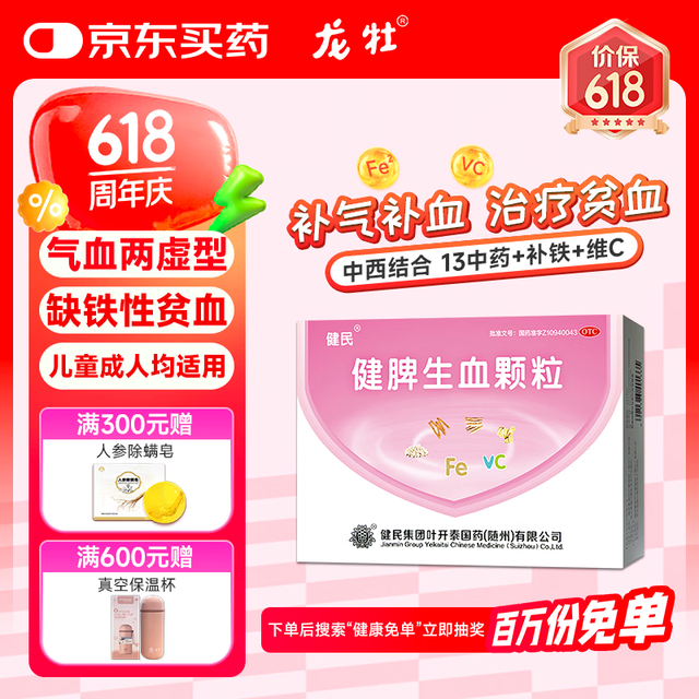 明健佳 健民 健脾生血颗粒 5g*28袋/盒 成人儿童健脾和胃养血安神气血两虚型缺铁性贫血大便不调倦怠乏力