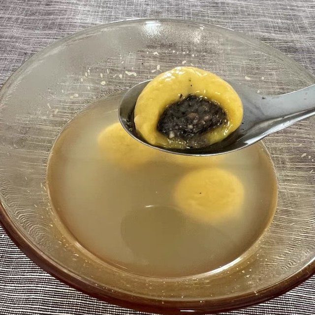 口味非常独特的爆浆生椰拿铁汤圆,整个都是一种咖啡的苦味,比较适合喜欢尝试新鲜事物的人,但说实话并不是那么的好吃