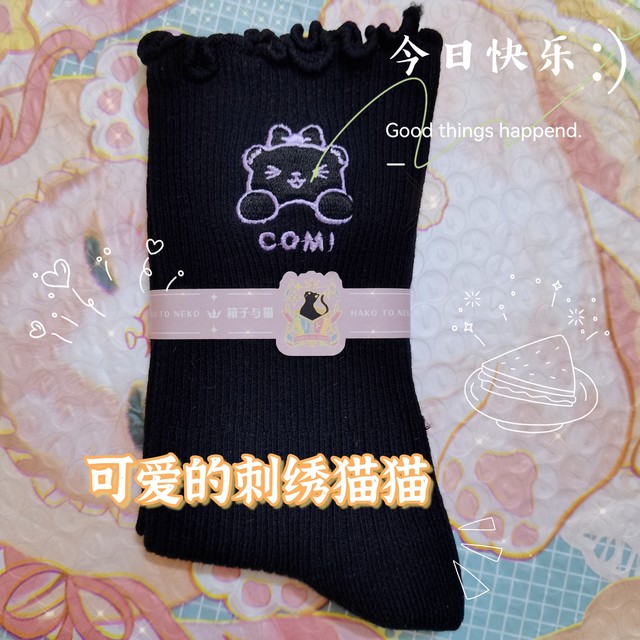☀️购买目的:天气凉了,穿中筒棉袜会更暖和。最重要的是这双袜子好可爱!🌸外观设计:袜子是黑色的,袜口用的是木耳边的设计,侧边还有一个可爱的刺绣猫猫头。🌟使用体验...