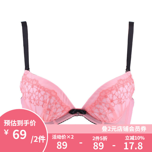 tutuanna 趣趣安娜 文胸日系纯色内衣樱花刺绣蝴蝶结带钻饰可爱聚拢型胸罩 757206-10 70B