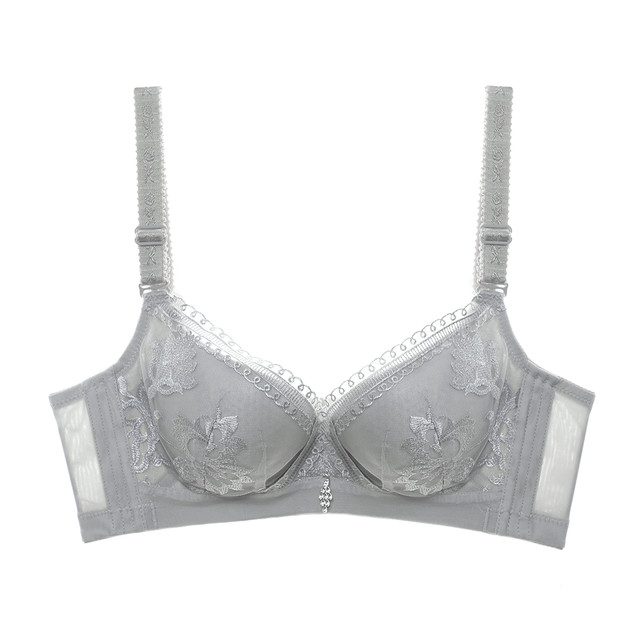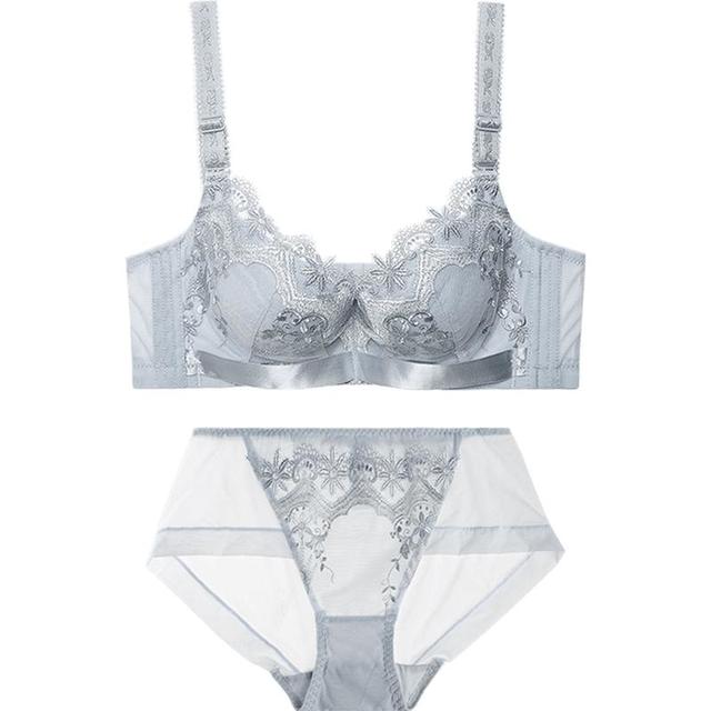 夏.娃.之.秀内衣女国潮刺绣文胸套装软支撑轻奢调整型侧收副乳胸罩内衣内裤 银灰 75C 配L