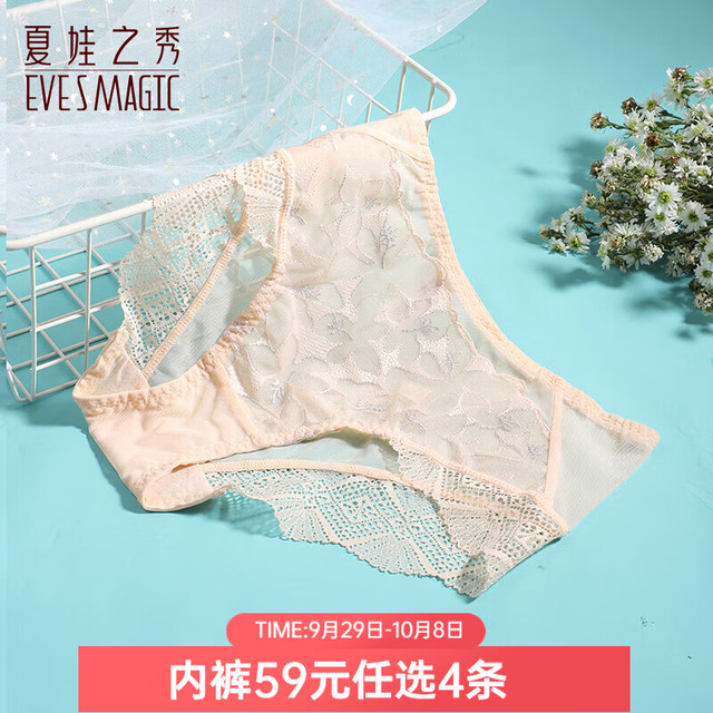 有券的上:夏娃之秀 夏.娃.之.秀 内裤女蕾丝内裤 肤色 蕾丝款1 1条(任选4条)