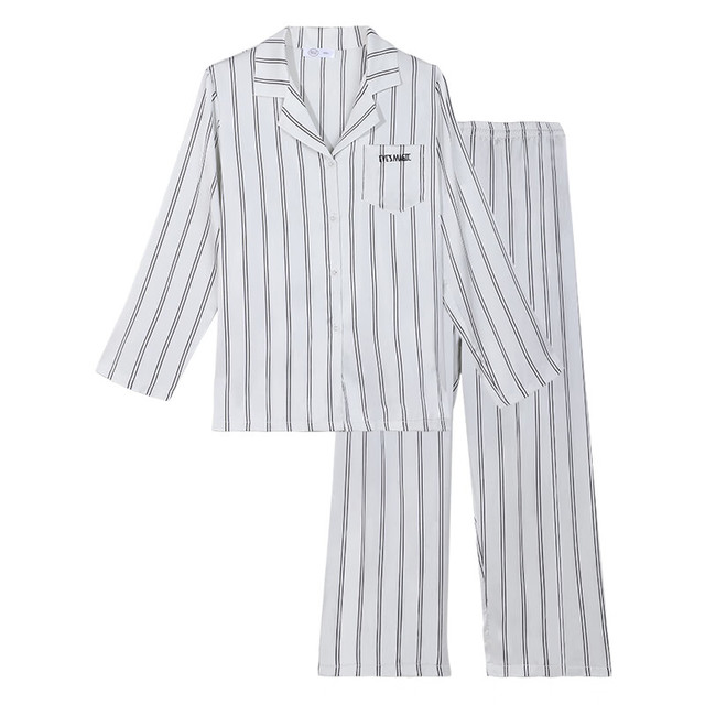 夏娃之秀 EVE‘S WHISPER透气百搭舒适休闲可外穿简约白条纹家居服套装(尺码齐全)