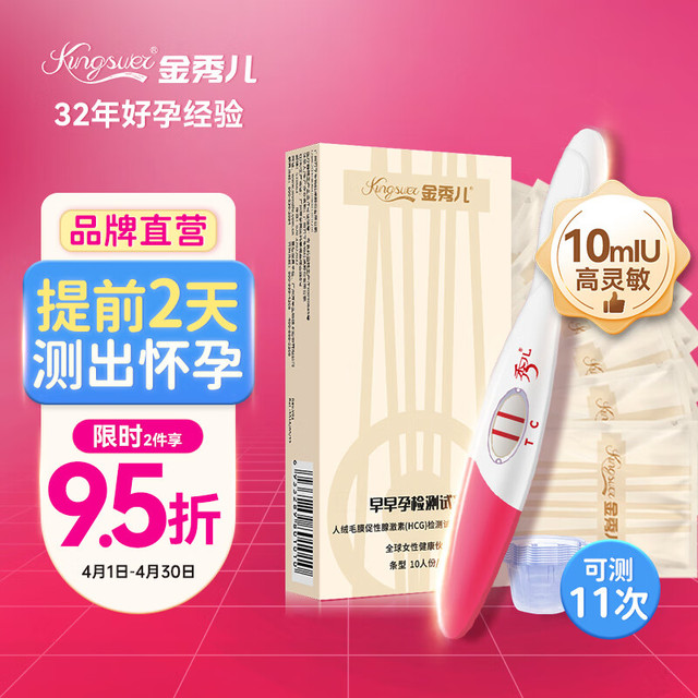 金秀儿 高精度验孕棒(验孕棒*1+验孕条*10)7.9元包邮(需用券)