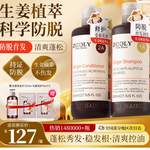 7.13 卓蓝雅 生姜防脱洗发水 800ml送10ml*557.15元(需买2件,需用券)