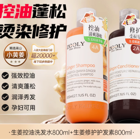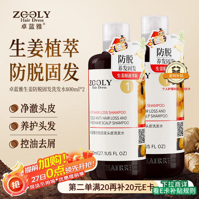 卓蓝雅 清爽控油洗发水800ml+防脱80ml+生姜10ml56.13元(需用券)