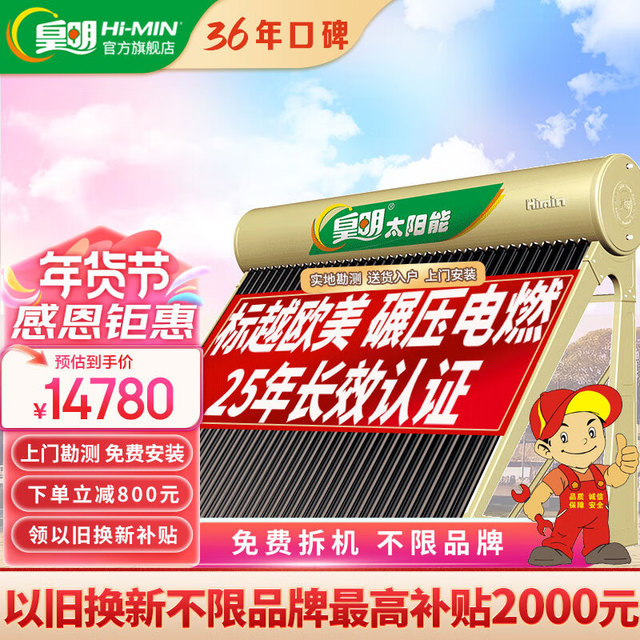Himin 皇明 太阳能热水器自动光电两用家用不锈钢水箱智能仪表包运输安装