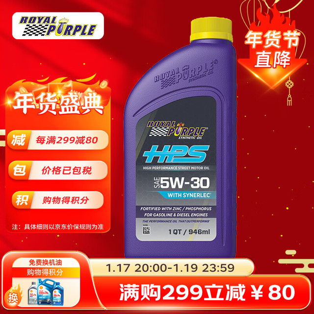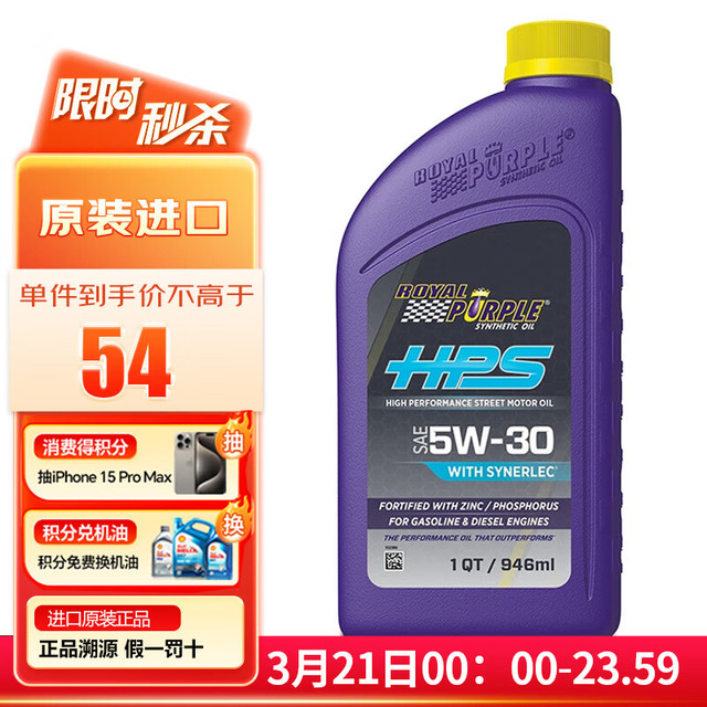 ROYAL PURPLE 紫皇冠 5W-30 SL级 HPS 全合成机油 946ml51.95元(需买4件,需用券)