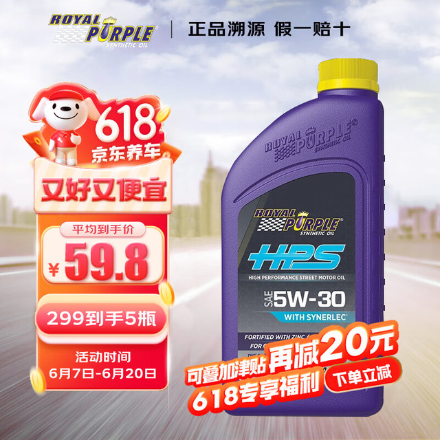 PLUS会员:ROYAL PURPLE 紫皇冠 5W-30 SL级 HPS 全合成机油 946ml57元(需买4件,共228元)