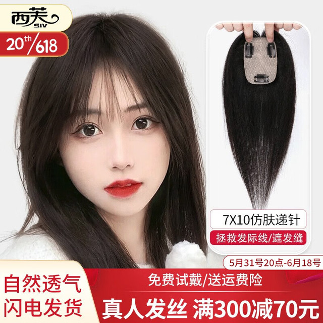 西芙假发女真发遮白发全真人发丝头顶补发片假发片增加补发量发块轻薄 自然色25cm