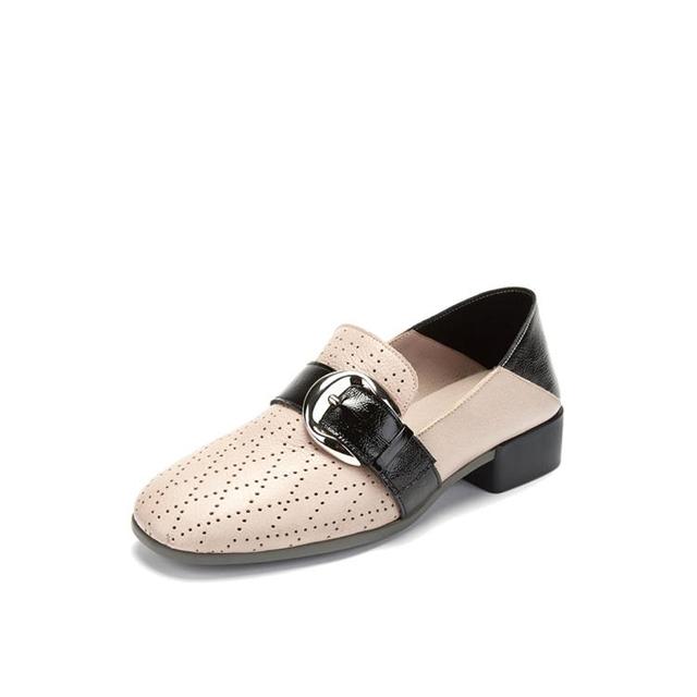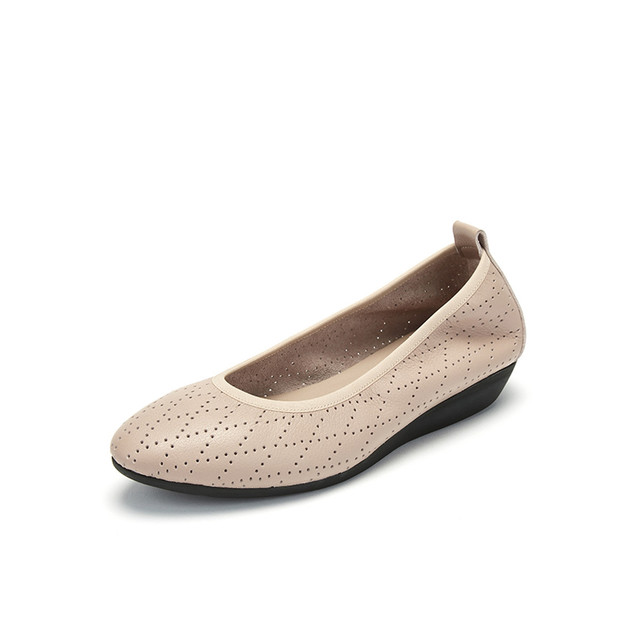 achette 雅氏 舒适乳胶底真皮女鞋子镂空女鞋平底低跟单鞋乐福鞋