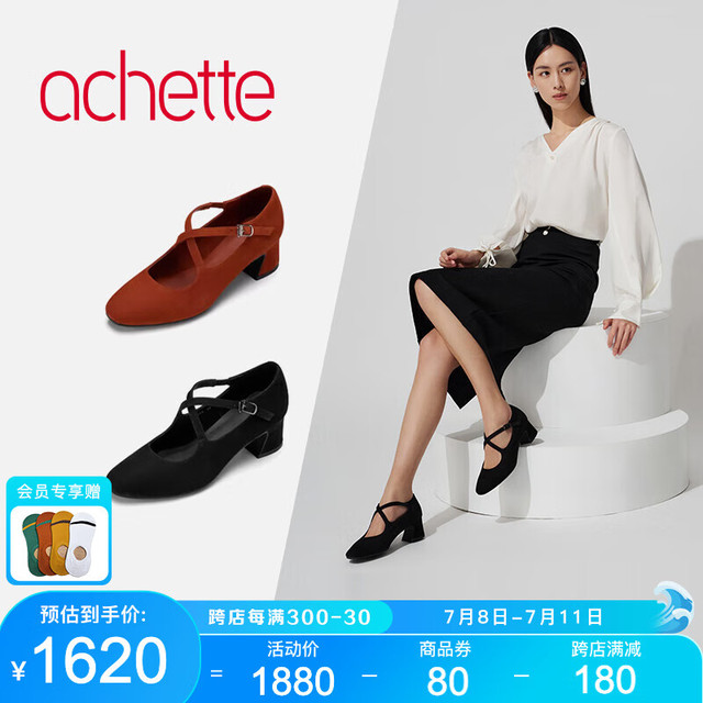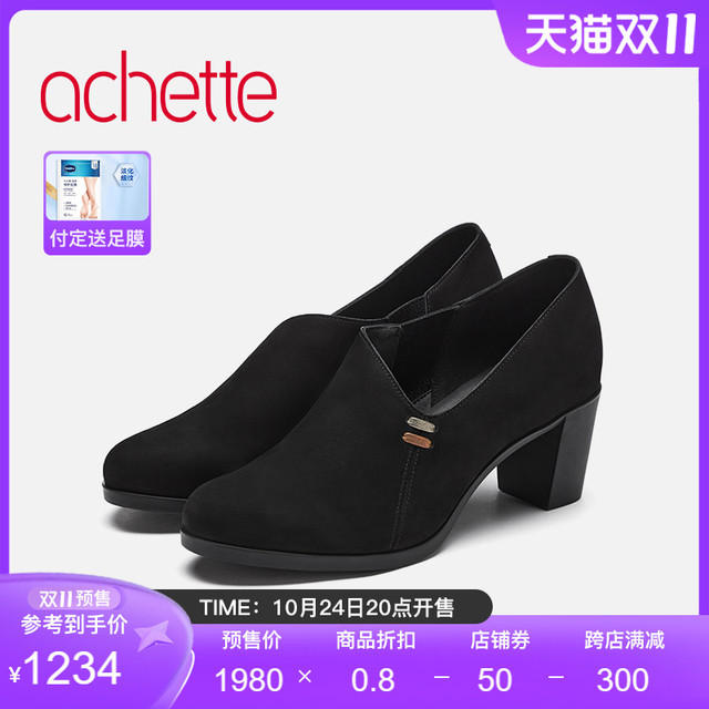 achette 雅氏 方跟圆头时尚商务正装浅口高跟鞋单鞋女鞋