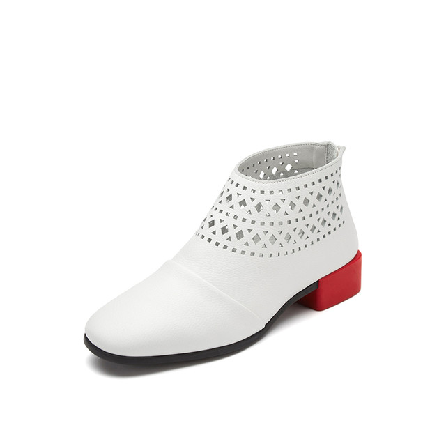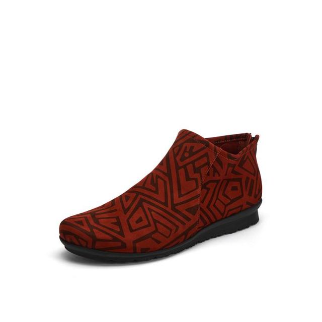 achette 雅氏 几何印花真皮舒适乳胶底低跟短靴女鞋