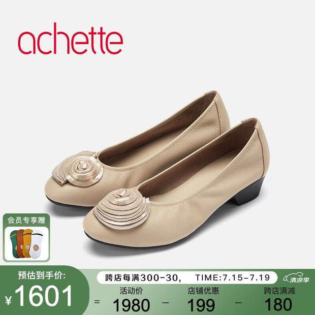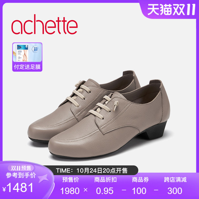 achette 雅氏 时尚圆头时尚真皮女鞋单鞋