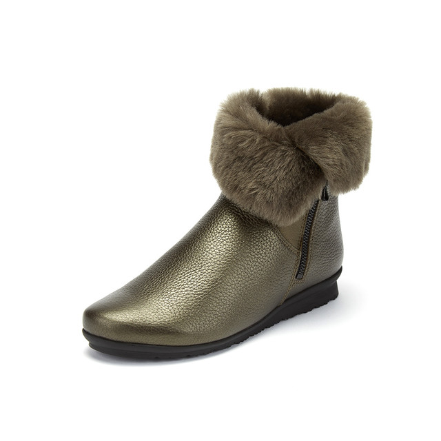 achette 雅氏 秋冬短筒乳胶底平底舒适真皮女鞋高跟鞋