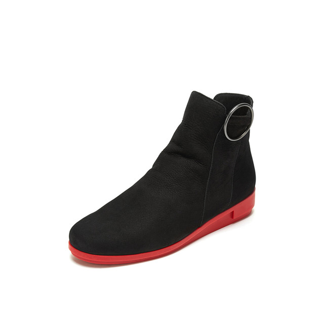 achette 雅氏 秋冬乳胶底真皮短靴饰扣休闲绒面牛皮女靴