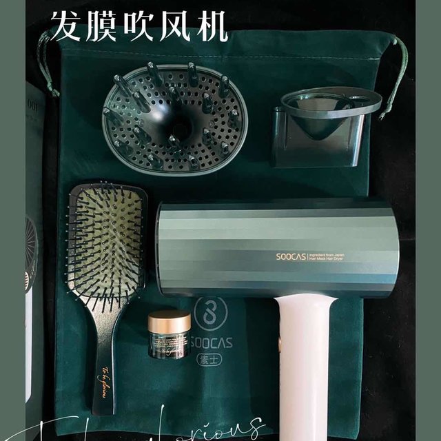 这款是参加某小程序兑换的,京东售价299元,通体绿色,手柄上带有梵高的名画,1800W大风量,配套顺滑和扩散两种风嘴,自带负离子功能,干发速度超快!