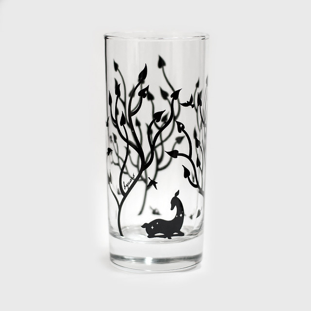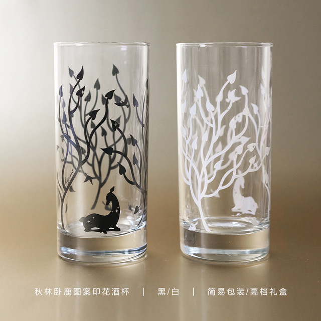 byears 白夜 原创卧鹿玻璃水杯对杯印花创意情侣牛奶果汁生日礼物