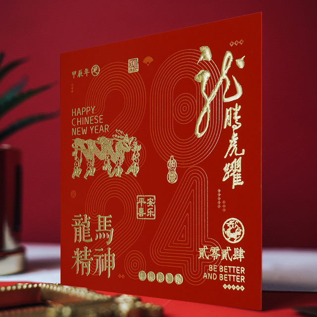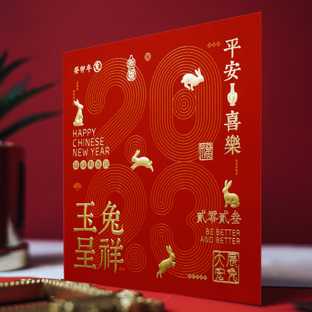 byears 白夜 原创2023红色中式兔年新年祝福贺卡春节卡片商务定制