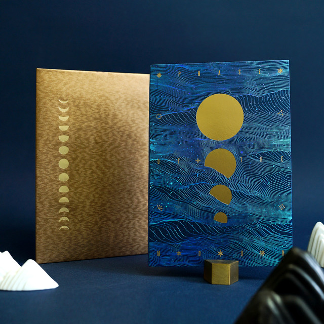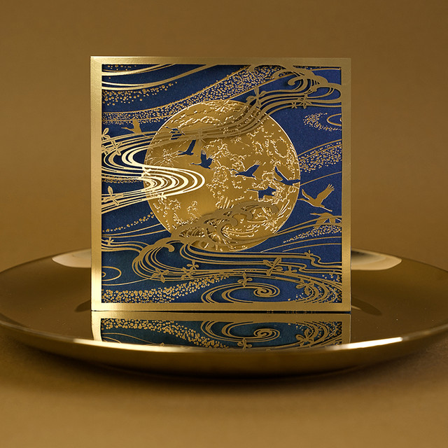 byears 白夜 原创中秋贺卡海上明月星空高端贺卡中式烫金卡片可定制