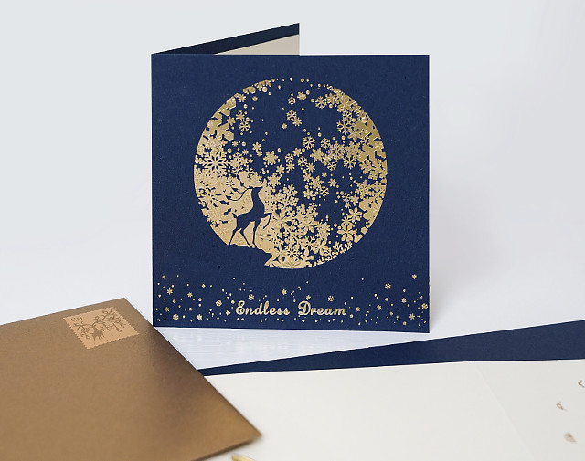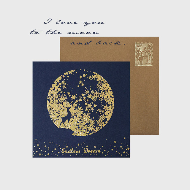 byears 白夜 原创中秋节贺卡蓝色月影鹿烫金卡片星空生日商务定制