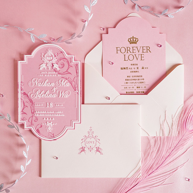 byears 白夜 粉色少女心亚克力喜帖请柬ins风欧式浪漫高端个性定制