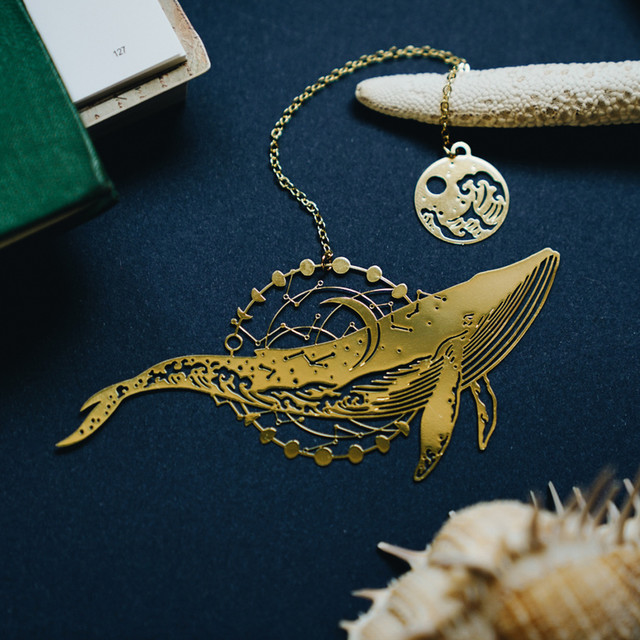 byears 白夜 鲸鱼金属书签创意海洋蓝鲸虎鲸座头鲸文艺情人节礼物黄铜镂空文创