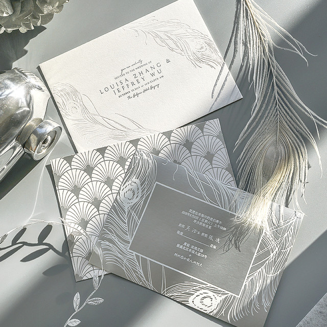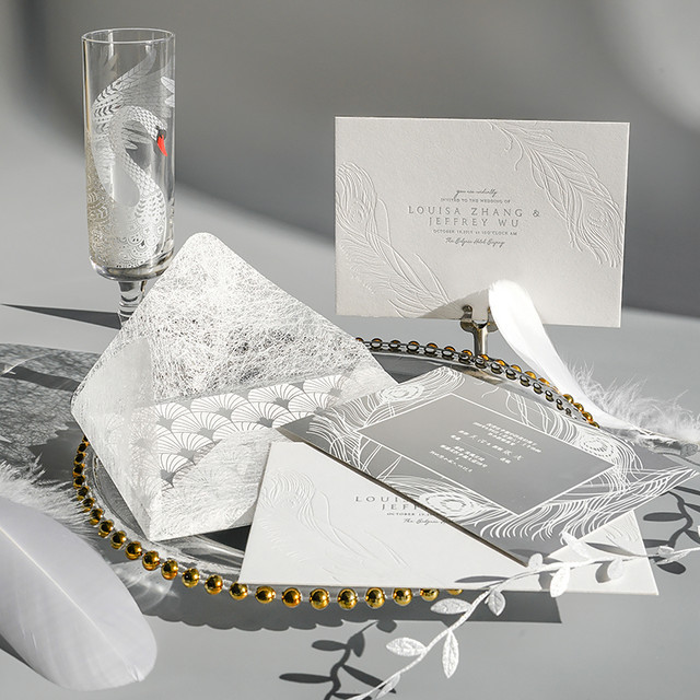 byears白夜白色羽毛结婚礼请柬喜帖清新浪漫高端创意定制邀请函