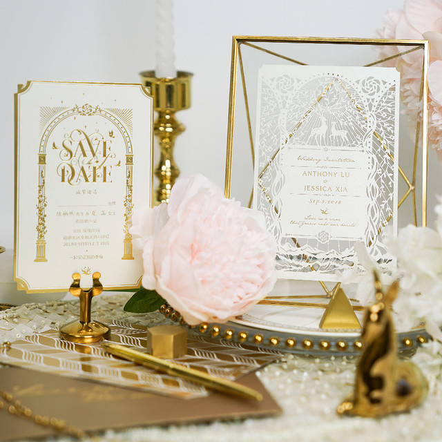 byears白夜原创高端小鹿镂空结婚礼请柬喜帖北欧浪漫森系创意定制