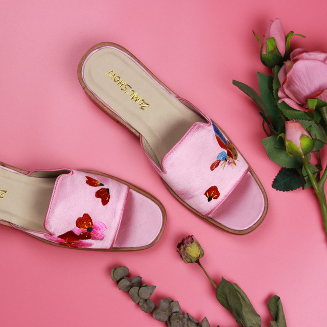 ZUMU'SHOW 祖母秀堂 蝶恋花高跟拖鞋(粉红色)37码