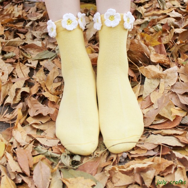 july crafts 小雏菊花朵系列 森系棉袜--浅橘色长款