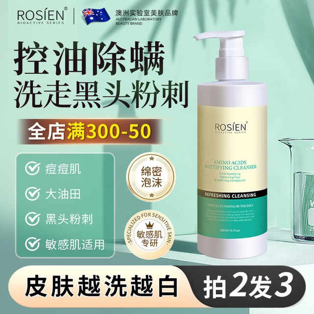 ROSIEN澳洲洗面奶美白控油除螨祛痘去黑头收缩毛孔氨基酸洁面乳男女 洁面乳300ml/瓶