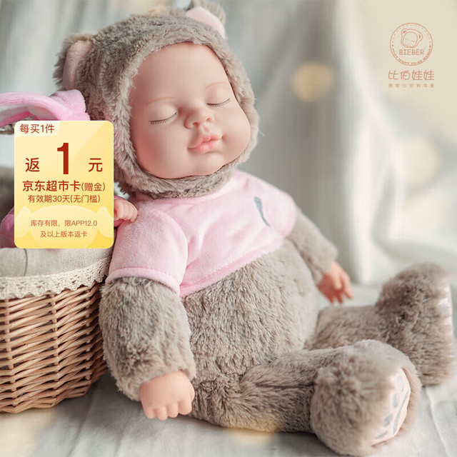 BIEBER 比伯娃娃BIEBER仿真毛绒玩偶睡眠安抚儿童玩具生日礼物女萌兔兔暖灰色63.83元(需用券)