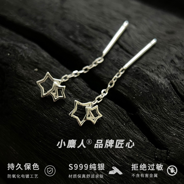 小麋人 999纯银耳线女耳钉耳环耳饰星星耳钉小众设计2023年新款潮