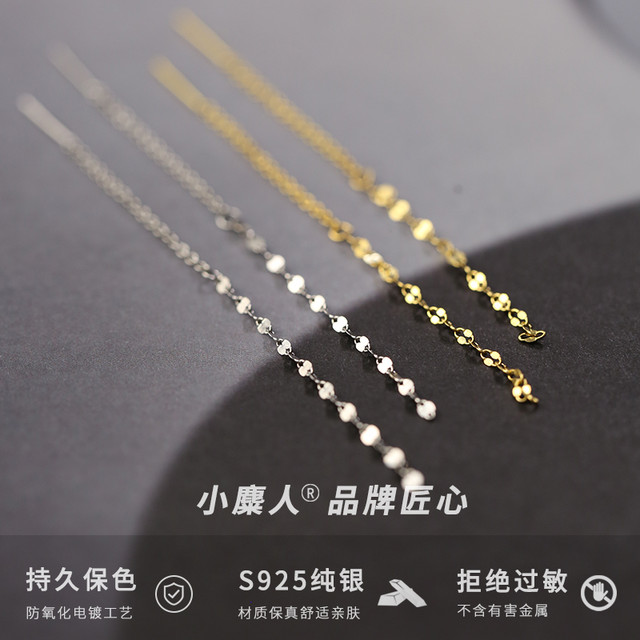 小麋人 925纯银耳线女耳环闪光流苏耳饰耳钉个性简约轻奢韩国网红