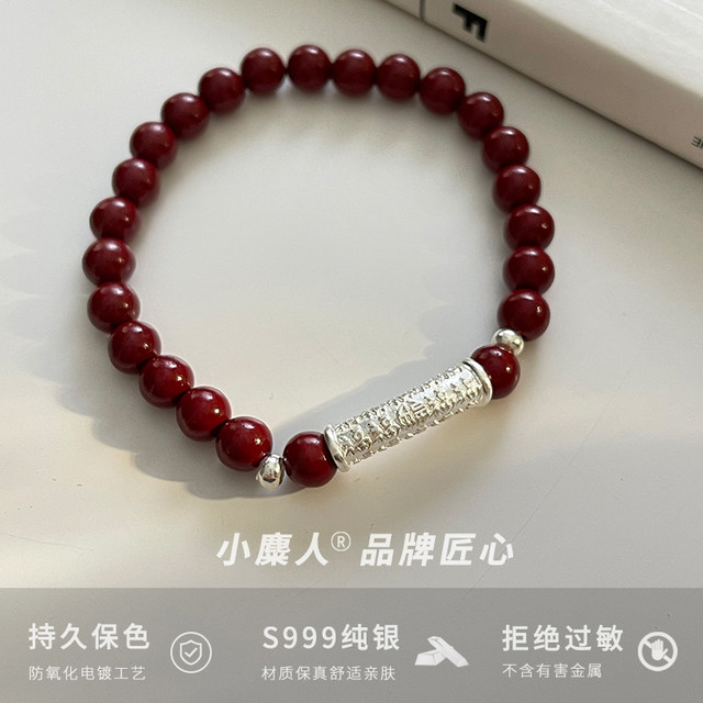 小麋人 999纯银百福管朱砂手链女手环手饰轻奢个性小众设计气质