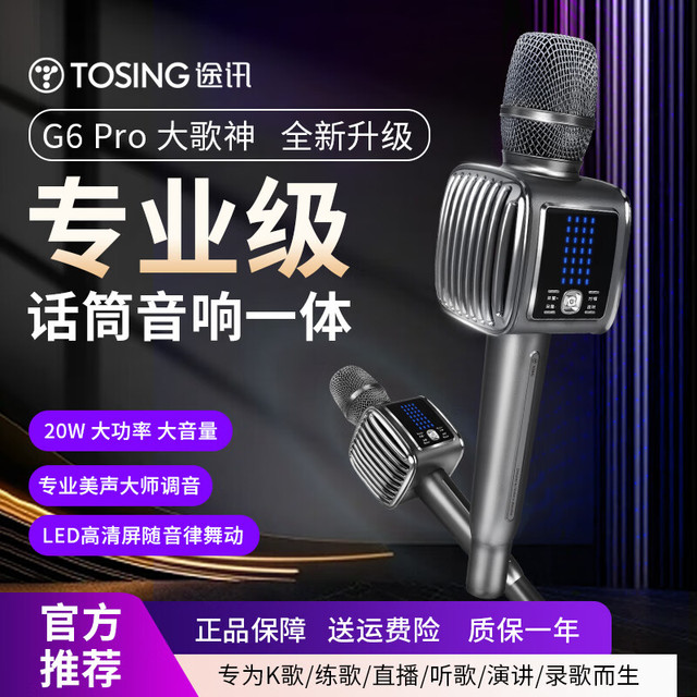 TOSING 途讯 V2青春版话筒音响一体麦克风无线蓝牙音响手机K歌家用电视车载唱歌神器 太空银272元(需买3件,共816元)
