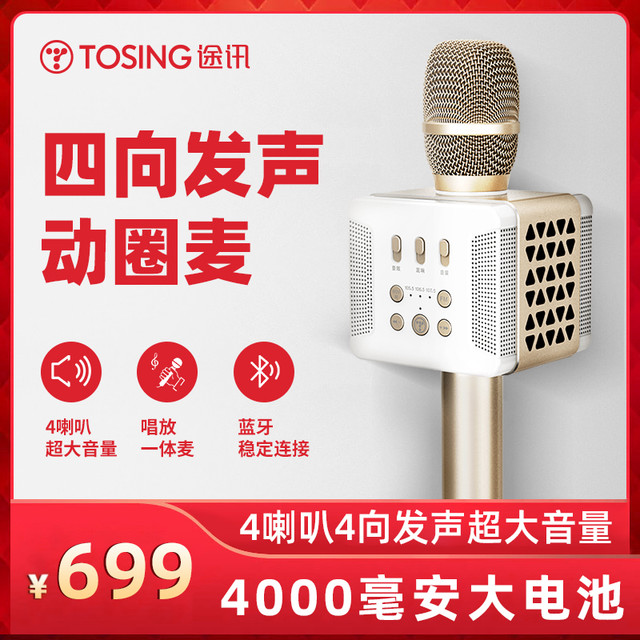 TOSING 途讯 04 手机K歌麦克风 全民K歌 蓝牙无线音响话筒一体麦克风 唱吧喇叭 主播直播 尊贵红219.64元(需买3件,共658.92元)