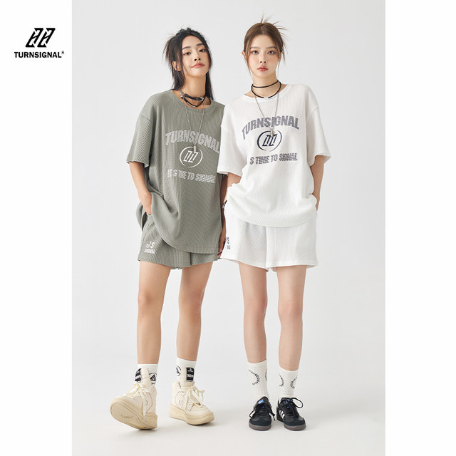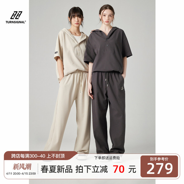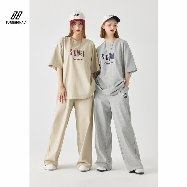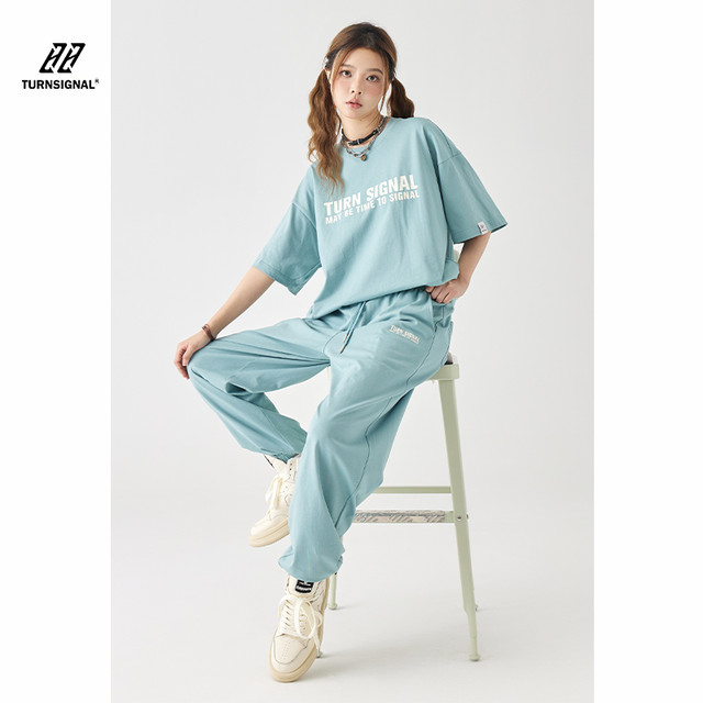 TURN SIGNAL 潮牌短袖T恤长裤运动套装女夏季新款薄款宽松束脚卫裤255.2元(需用券)