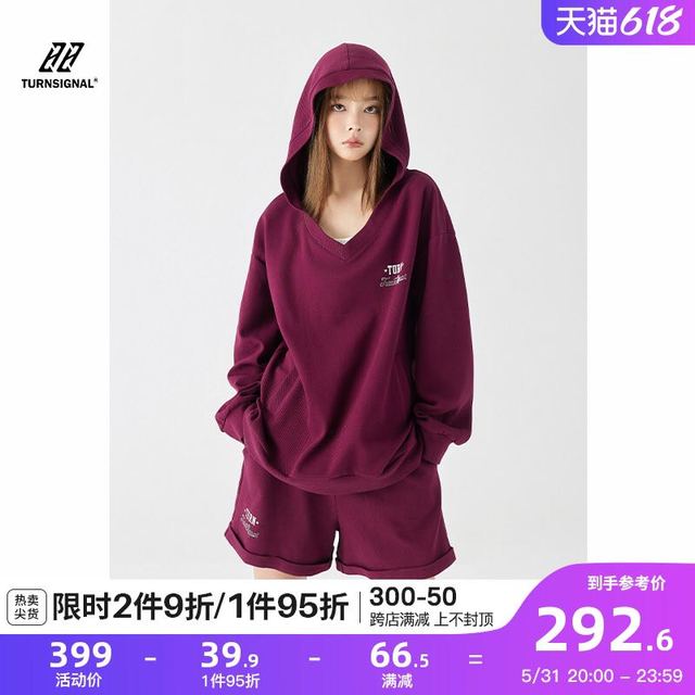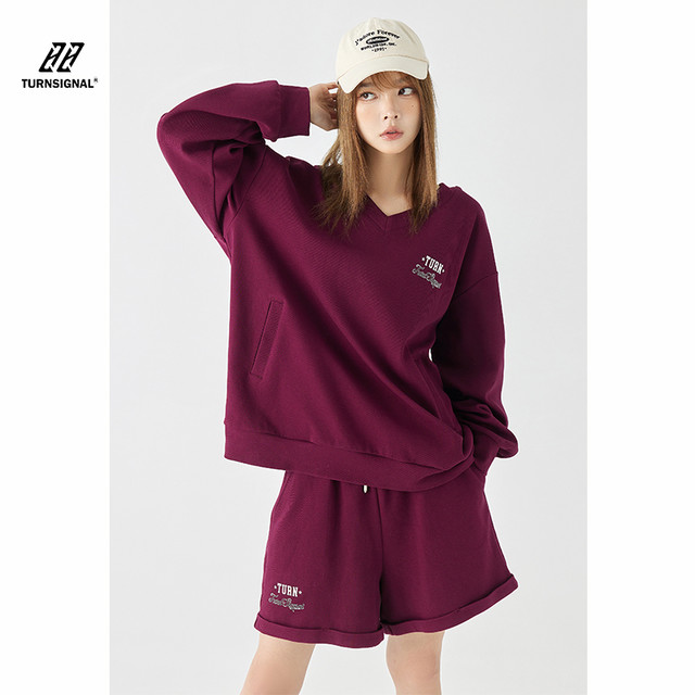 TURN SIGNAL 潮牌休闲运动套装女春秋薄款宽松v领卫衣短裤两件套299.2元(需用券)