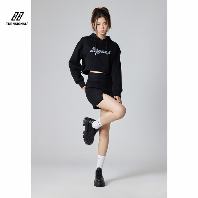 TURN SIGNAL 潮牌高腰包臀裙女2023秋冬新款黑色A字半身裙修身短裙113.87元(需买3件,共341.6元)