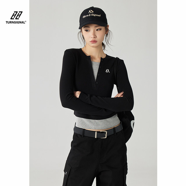 TURN SIGNAL 潮牌假两件长袖T恤女2024春秋新款修身打底衫上衣春季131.2元(需买2件,共262.4元)